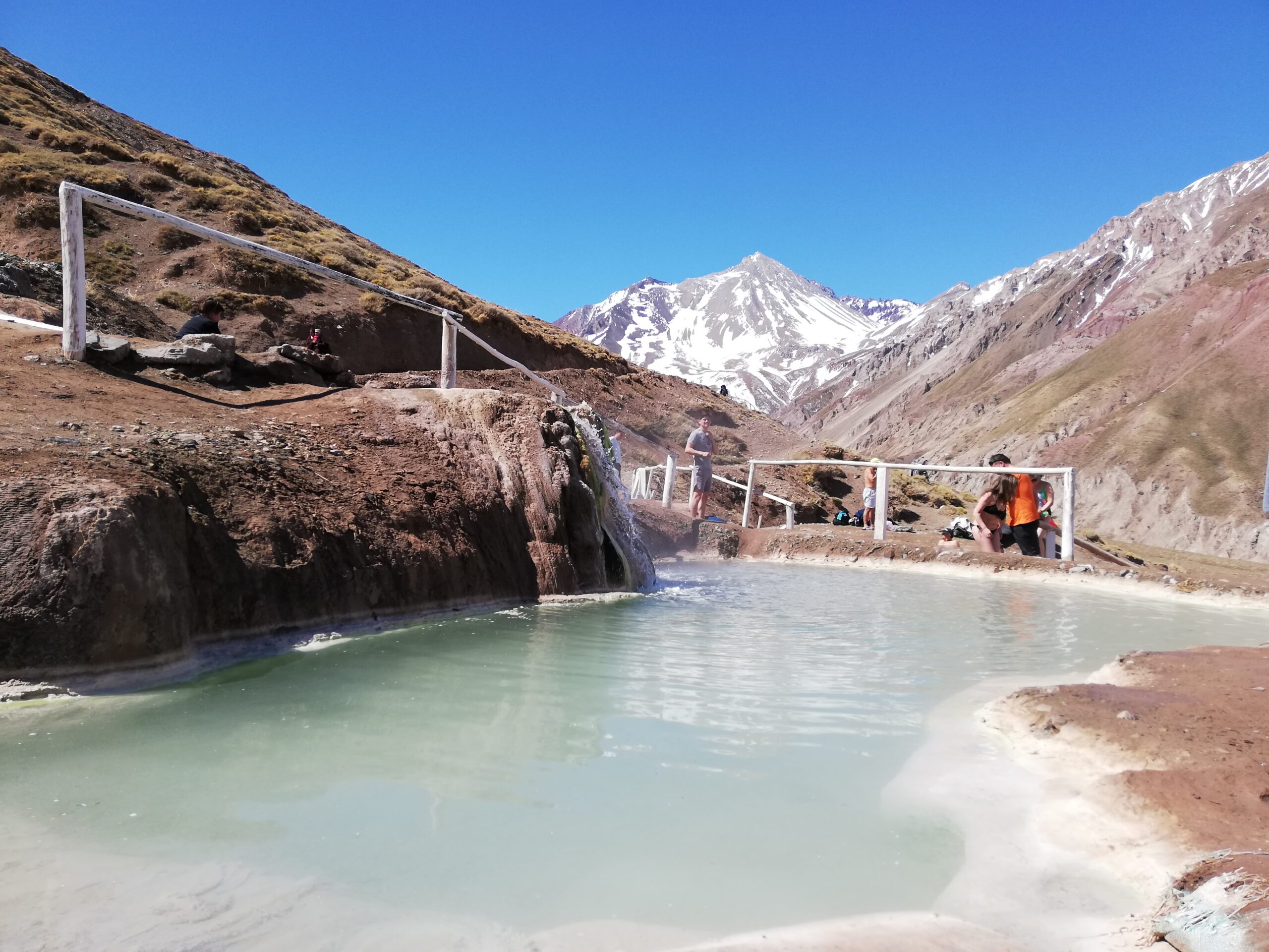 Após a aventura, permita-se um momento de puro bem-estar nas Termas Colinas (também conhecidas como Termas Valle de Colina). Este oásis natural em meio às montanhas oferece piscinas com águas termais minerais, perfeitas para relaxar o corpo e a mente. Sinta a renovação enquanto aprecia as paisagens andinas que o cercam. Um convite irrecusável para descontrair e aproveitar os benefícios das águas termais em um dos cenários mais bonitos do Chile.